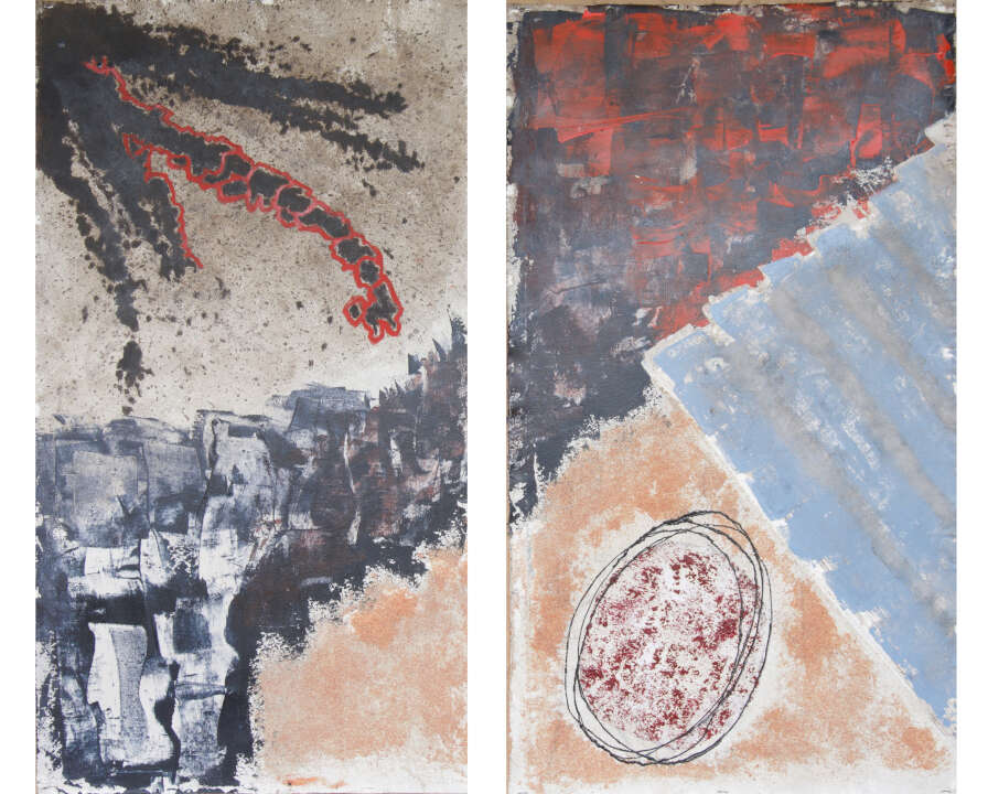 Diptico con arena - 2x50x90cm, técnica mixta sobre tela, 2019